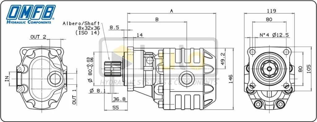 BƠM BÁNH RĂNG VỎ GANG OMFB NPH ISO – 4 HOLES-ISO HYDRAULIC GEAR PUMPS