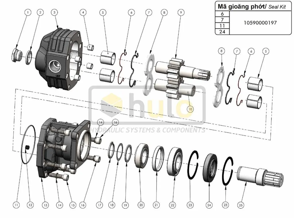 Cấu tạo của Bơm thủy lực bánh răng vỏ gang, quay hai chiều LTMH ISO OMFB
